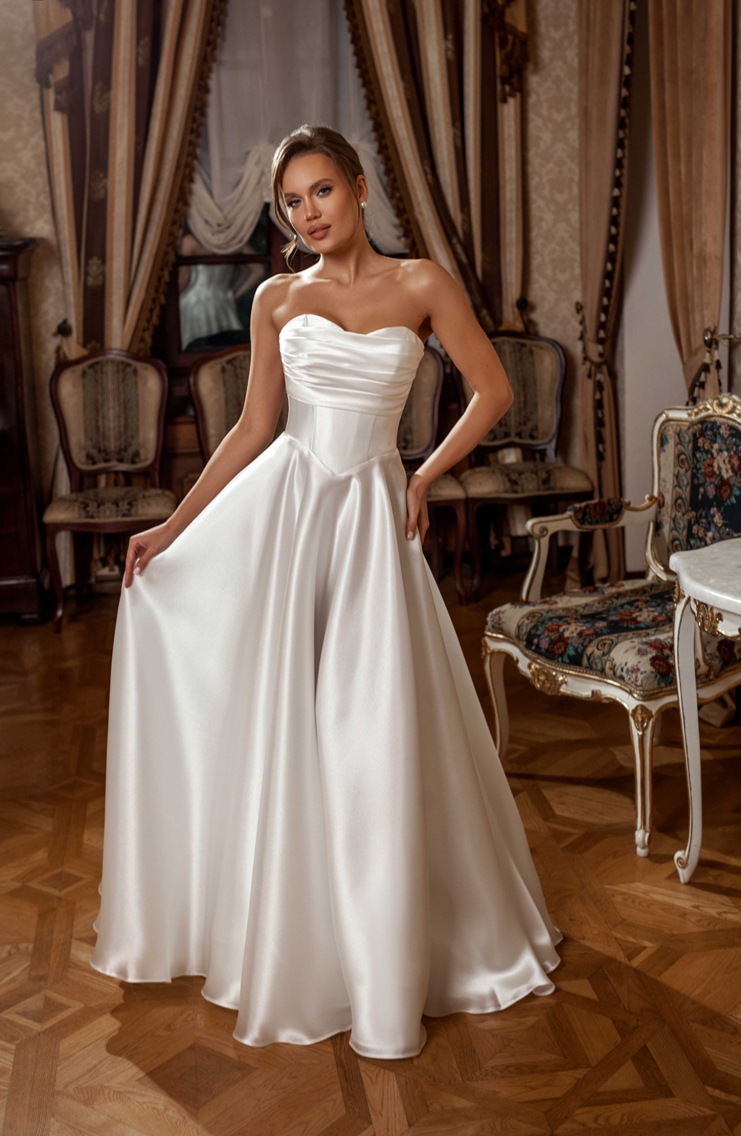 Платье свадебное , изысканное и стильное из органзы с необычным переплетением нитей, благодаря которому ткань имеет особый блеск.