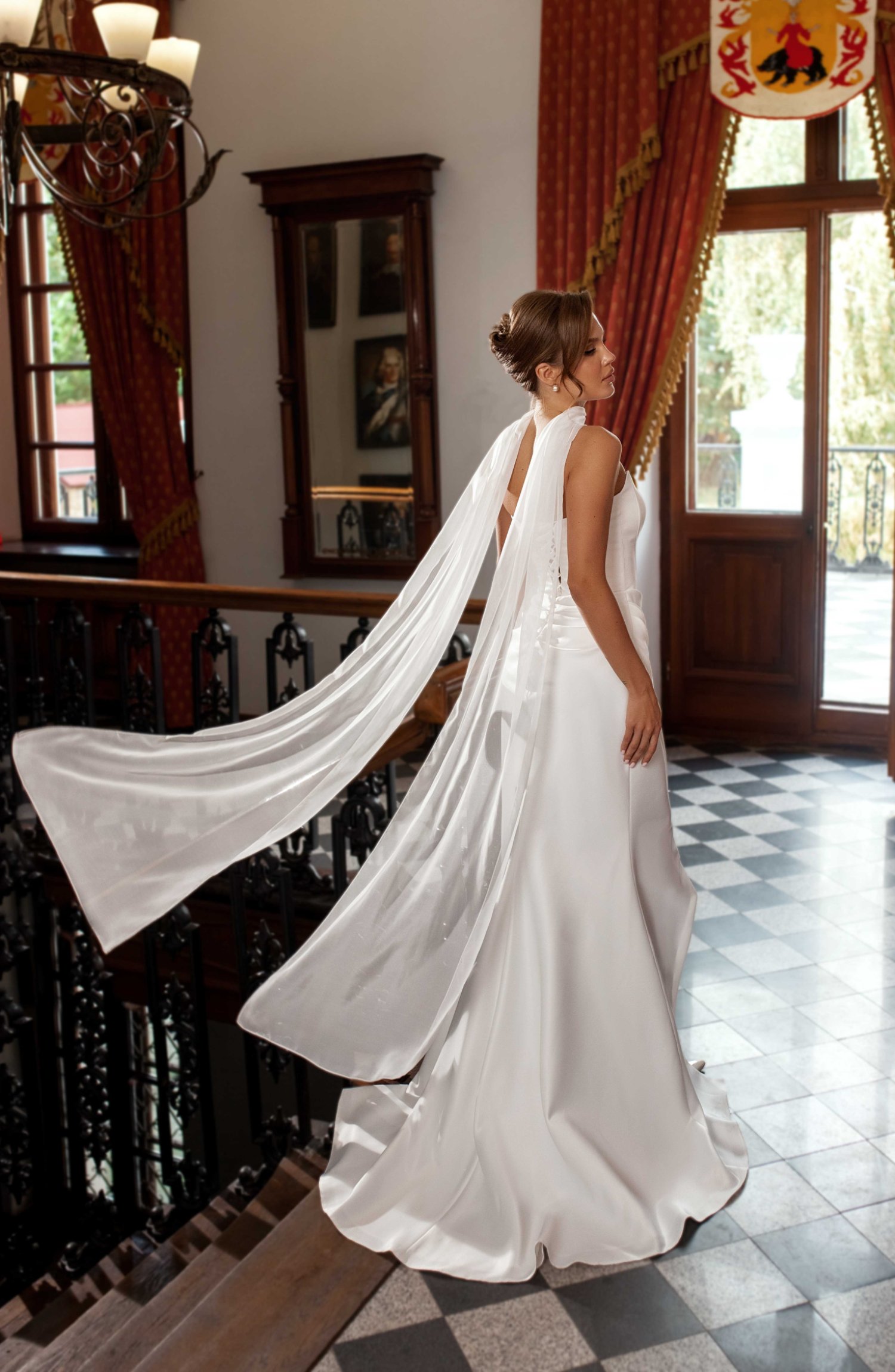 Платье нарядное силуэта рыбка из классического плотного сатина с плотным лифом , который обеспечивает хорошую посадку изделия на фигуре. Наряд дополнен шарфиком из тончайшего шифона.