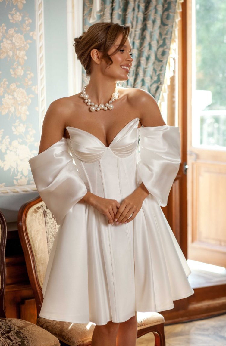 Платье нарядное из классического атласа с рукавами . Немного дерзости и романтизм!