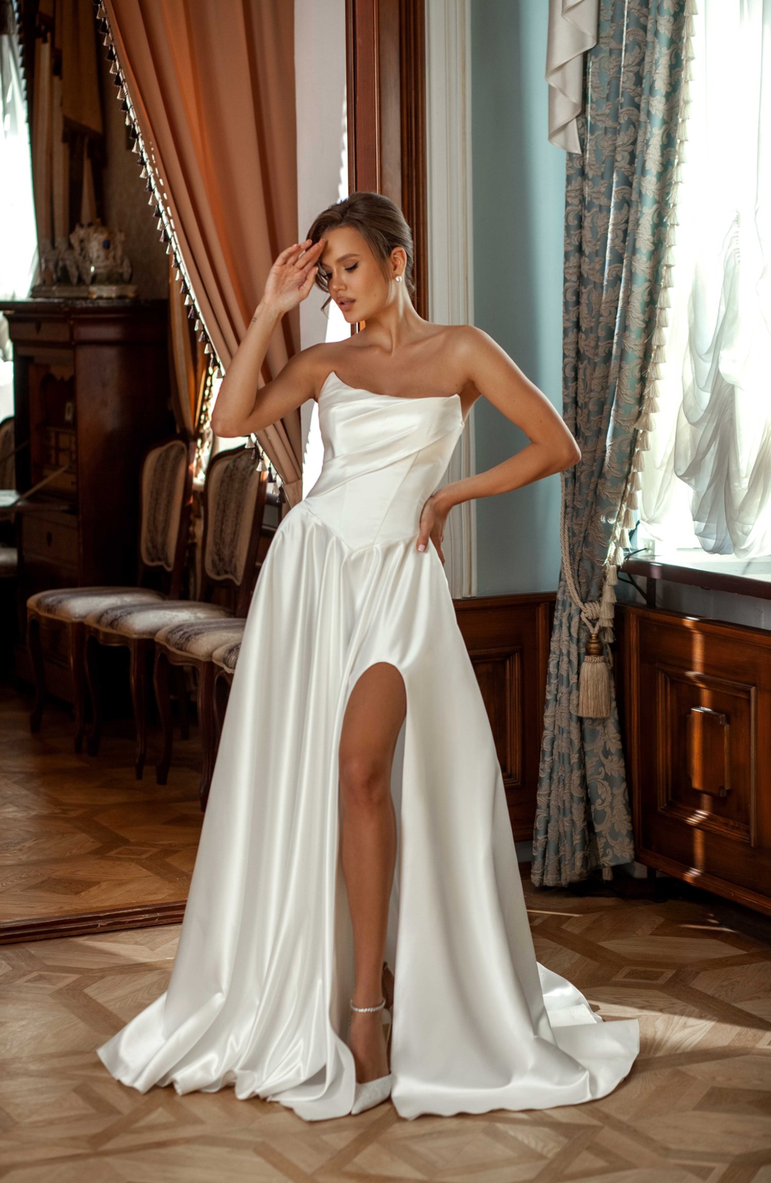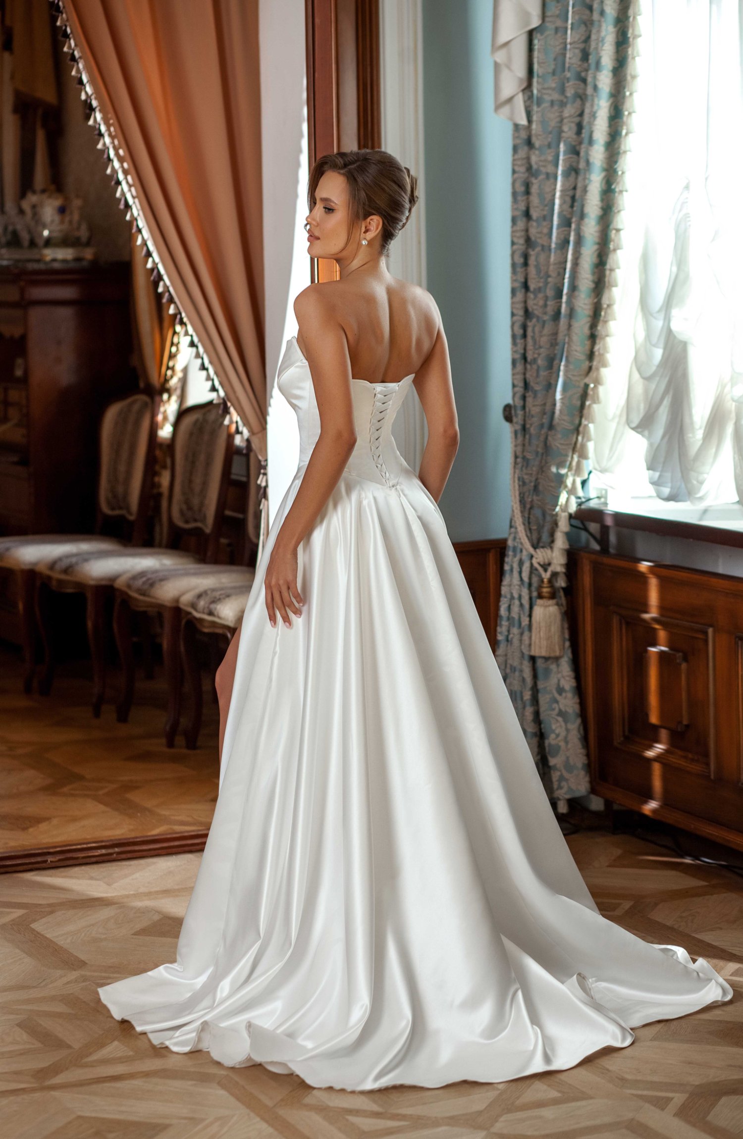 Платье свадебное А силуэта из дюпонта на подкладке.