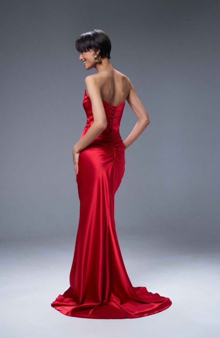 Платье нарядное для модных девушек из перламутрового , мягкого атласа.