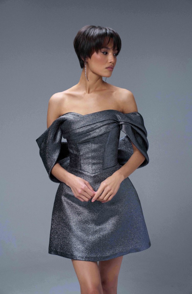 Платье нарядное с плотным лифом и кокетливой юбкой из парчи на подкладке.
