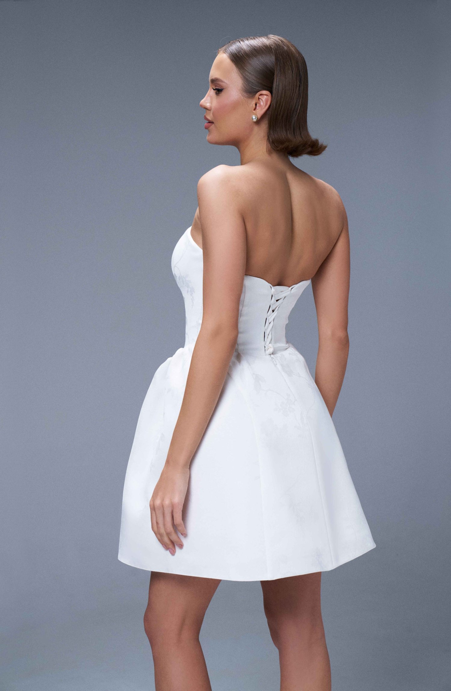 Платье для важных мероприятий из мягкого жаккарда с трендовым цветочным дизайном на подкладке.
