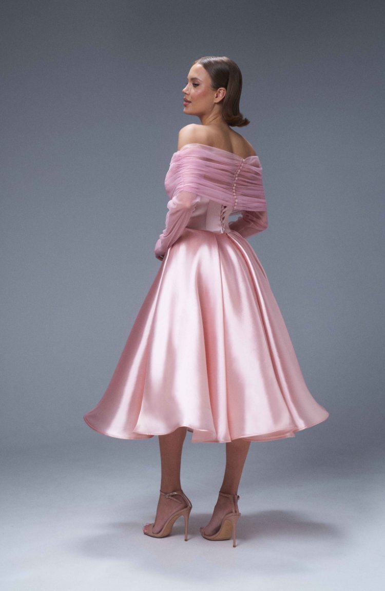 Платье нарядное для стильных девушек . Платье из атласа с модным " стеклянным " переплетением нитей , на подкладке . Длина миди и съёмное болеро + рукава из сеточки помогают создать романтический образ.